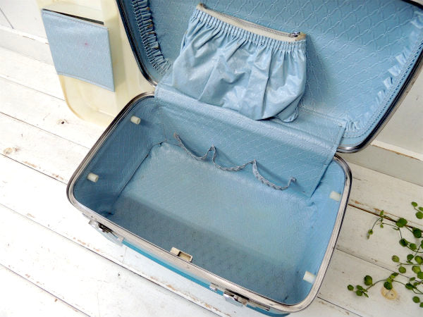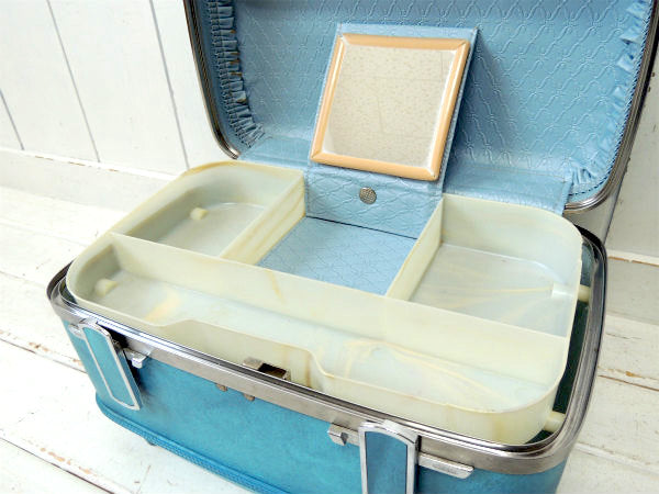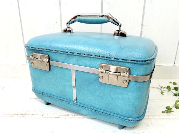 【アメリカンツーリスター】ダイアルロック付き・水色・ヴィンテージ・2段メイクボックス/コスメボックス