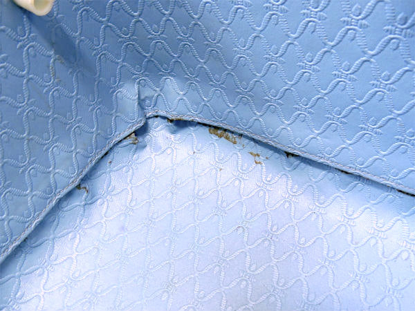 内張は水色の模様入りビニール製で、中にポーチが入っております。