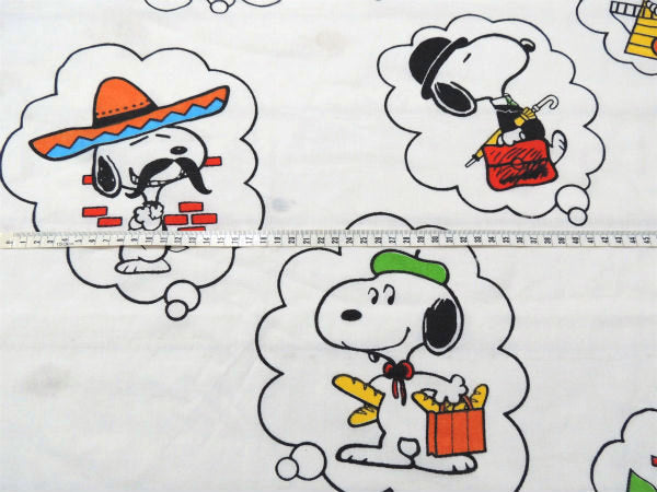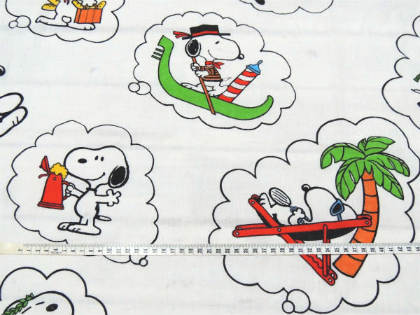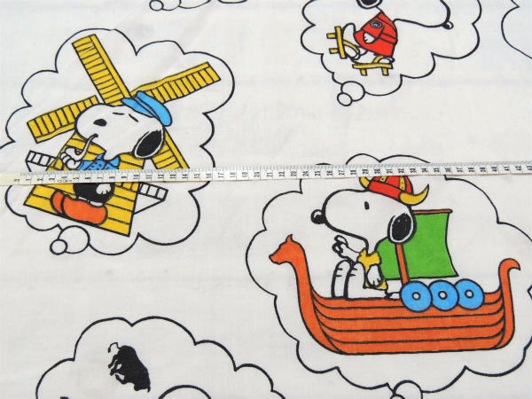 アメリカで見つけました・・『スヌーピー』のドリーム柄・50'sヴィンテージ・USEDフラットシーツ(ハーフサイズ)です。
