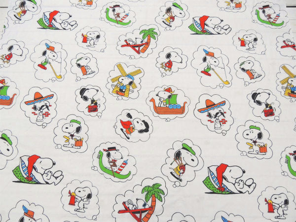 スヌーピーが、フランスやイタリア・ハワイ・メキシコ・オランダ・ギリシャなど世界を旅する夢を見ている、とっても可愛いドリーム柄プリントです。