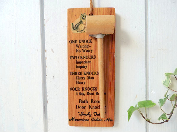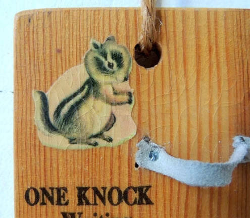 アメリカで見つけました・・リスのデカール付き・木製のヴィンテージ・バスルーム・ドアノッカーです。