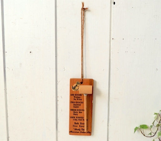 バスルームのドアや扉に取り付けて付属の木製ハンマーでコンコンッ‥とノックをする為のドアノッカーです。