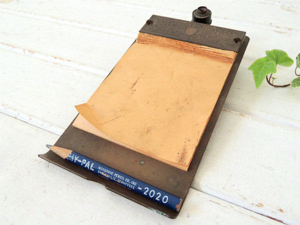 1910〜1920's 繊細 花柄 真鍮製 アンティーク・オールド OLD メモホルダー バインダー USA
