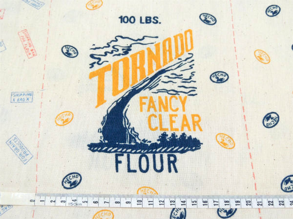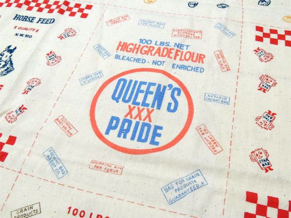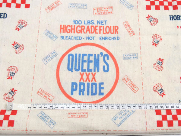 【Tornado Fancy Clear Flour】が1パネル、【Queen's XXX Pride High Grade Flour】が1パネル、【Spring Horse Feed】が2パネル、袋の裏面になるパネルが2枚、合計6パネルの未カット点線入りファブリックです。