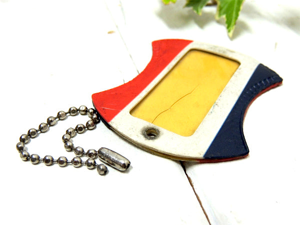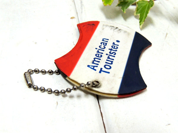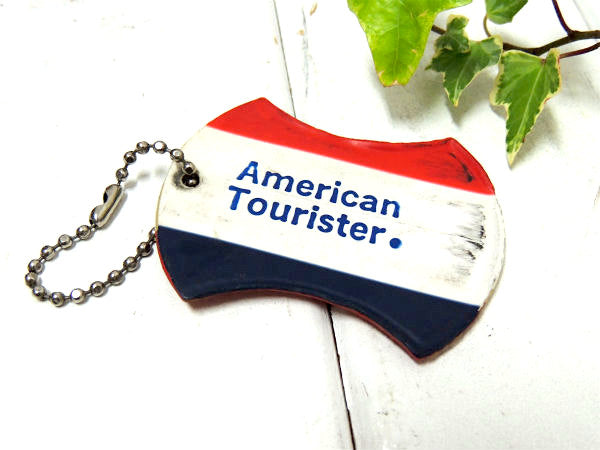 アメリカ西海岸で見つけました・・・1933年にアメリカ合衆国ロードアイランド州で誕生した、アメリカでは誰もが知っている旅行かばんブランド『American Tourister(アメリカン・ツーリスター)』のヴィンテージ・トリコロールカラー・ネームタグ(名札)ボールチェーン付きです。