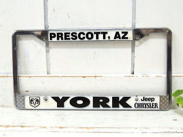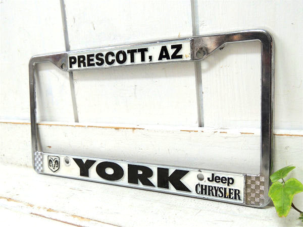 アメリカ合衆国・アリゾナ州で見つけてきました!”Jeep/CHRYSLER/DODGE”のヴィンテージ・ナンバープレート用・フレーム(ナンバーフレーム)。