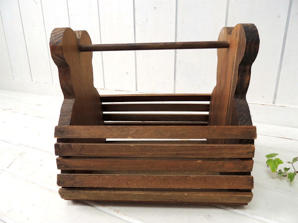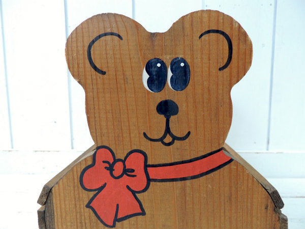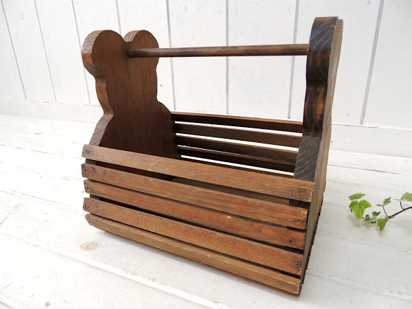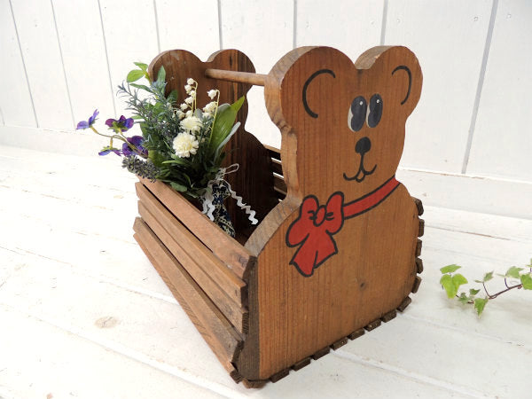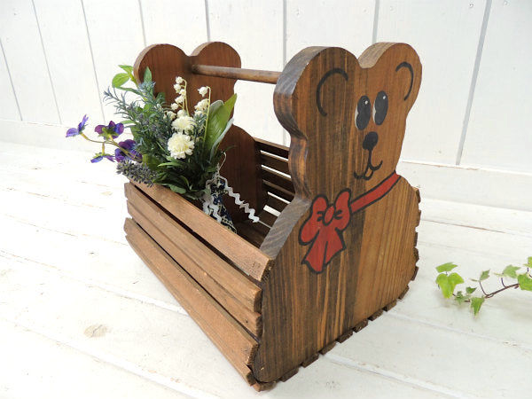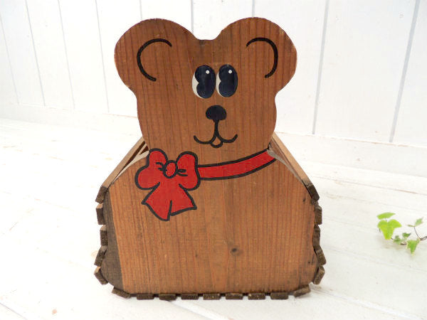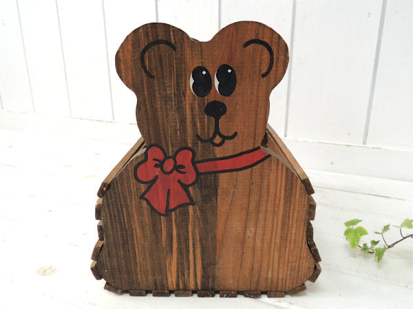 テディベア&クマ型・木製・ヴィンテージ・バスケット ウッドバスケット おもちゃ箱 USA
