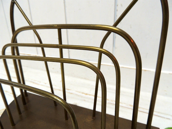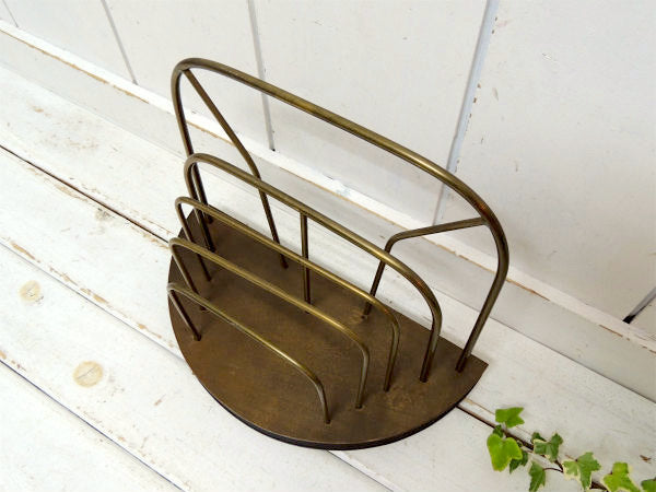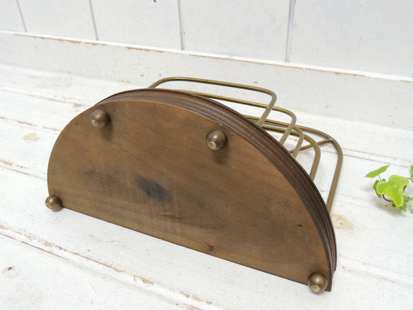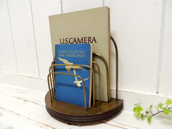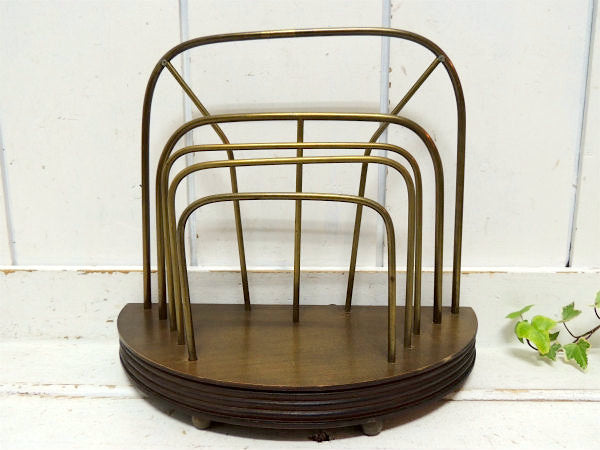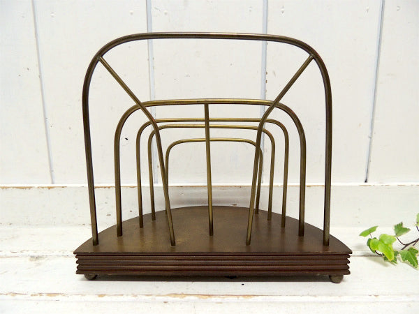 ミッドセンチュリー・木製×真鍮・半円形・ヴィンテージ・ブックスタンド/書類スタンド/本立て USA