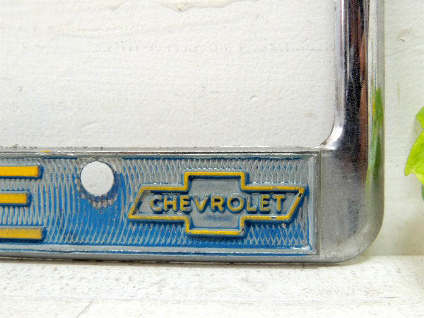 アメリカ合衆国・カリフォルニア・サンフランシスコ〜クルマで約1時間半の町・ストックトン・シボレー・ディーラー”STOCKTON/CHASE/CHEVROLET”のヴィンテージ・ナンバープレート用・フレーム(ナンバーフレーム)。