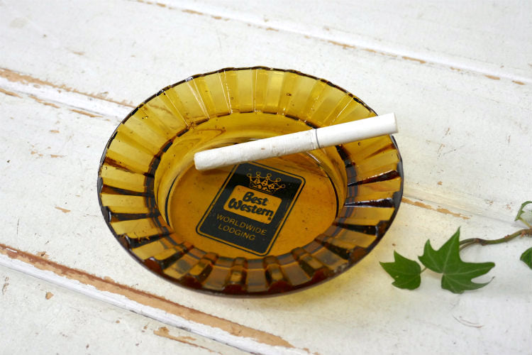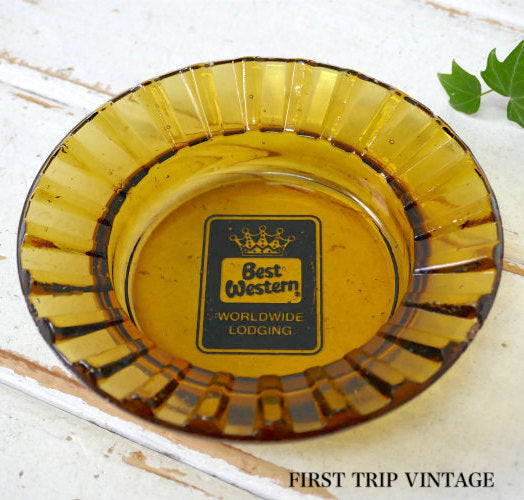 Best Western Worldwide Lodging ベストウエスタン アンバー ガラス製 ヴィンテージ 灰皿 アシュトレイ アドバタイジング USA