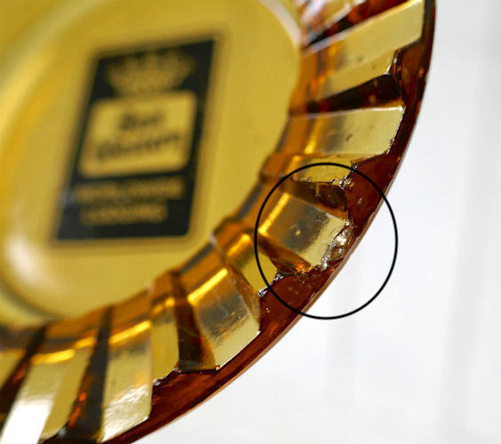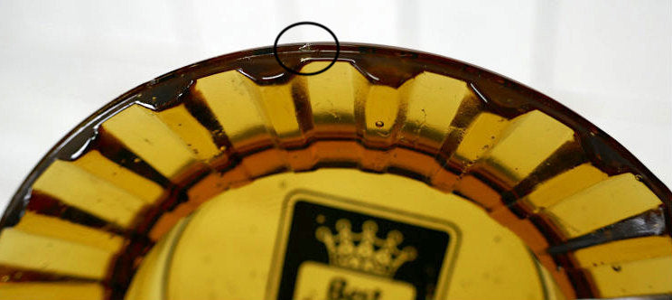 経年で多少のヨゴレ・スリキズ・外側リム部分に数カ所に小さな欠け(ザラツキ)・製造時の気泡が見られます。
