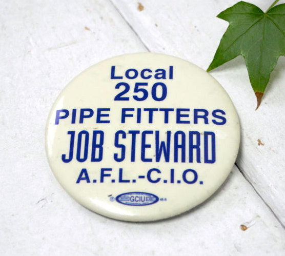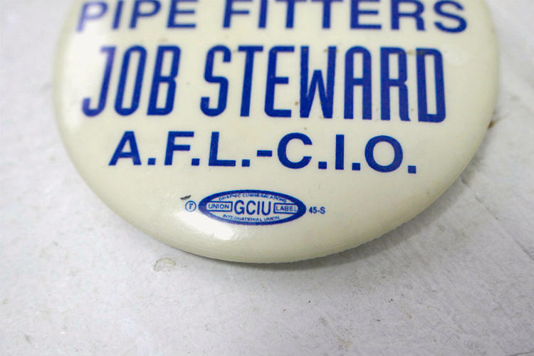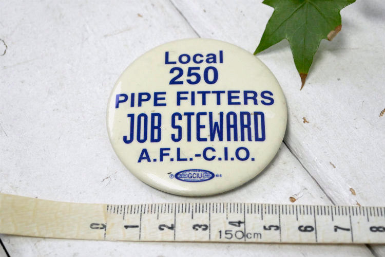 アメリカ UNION 労働組合 ヴィンテージ 缶バッジ USA Local 250 PIPE FITTERS JOB STEARD A.F.L. C.L.O
