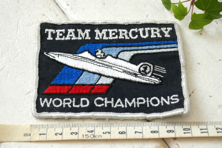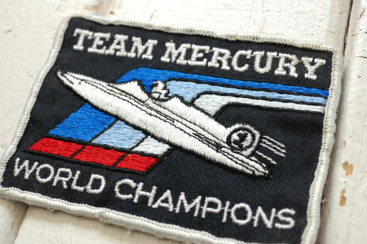 アメリカ西海岸・カリフォルニア・ロサンゼルスで見つけました・・ TEAM MERCURY WORLD CHAMPONS ・チームマーキュリーワールドチャンピオン ヴィンテージ・アドバタイジング・ワッペン (刺繍 ワッペン)パワーボートです。