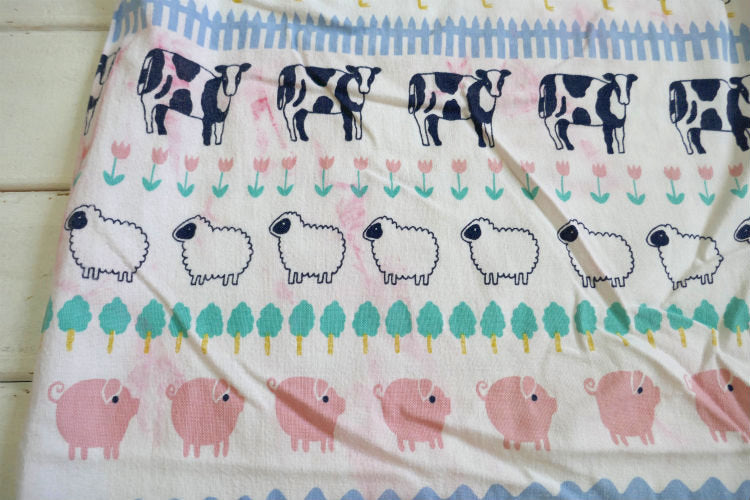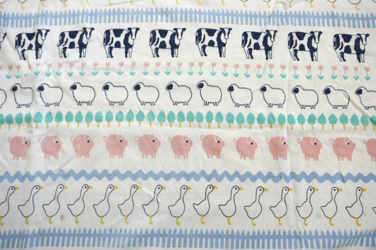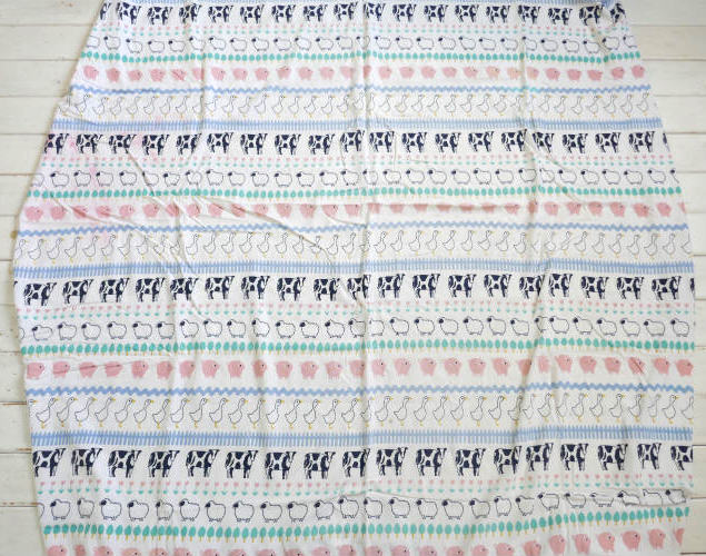 ひつじ アヒル 牛 ブタ 動物柄 チューリップ 牧場 コットン100% 80's ヴィンテージ ユーズドシーツ ベッドシーツ (ボックスタイプ)