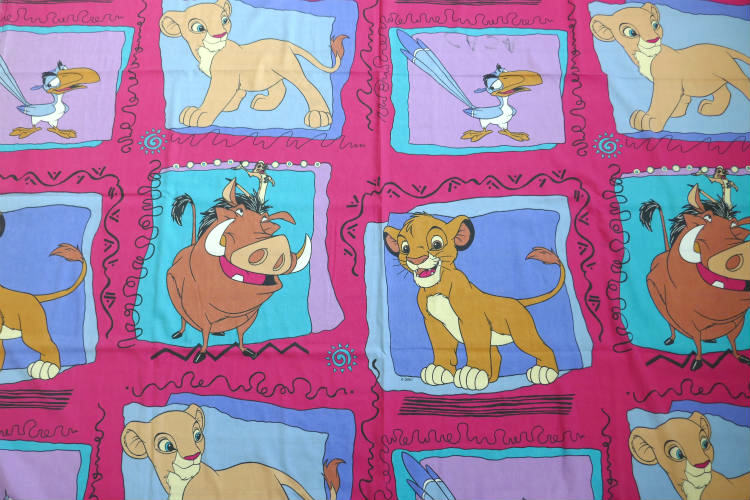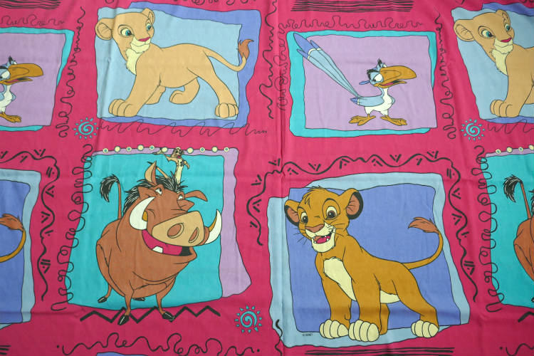 ライオンキング ディズニー映画 シンバ ナラ プンバァ ザズー パネル柄 ビンテージ ユーズドシーツ フラットシーツ ベッドシーツ USA