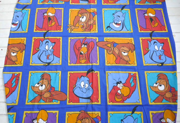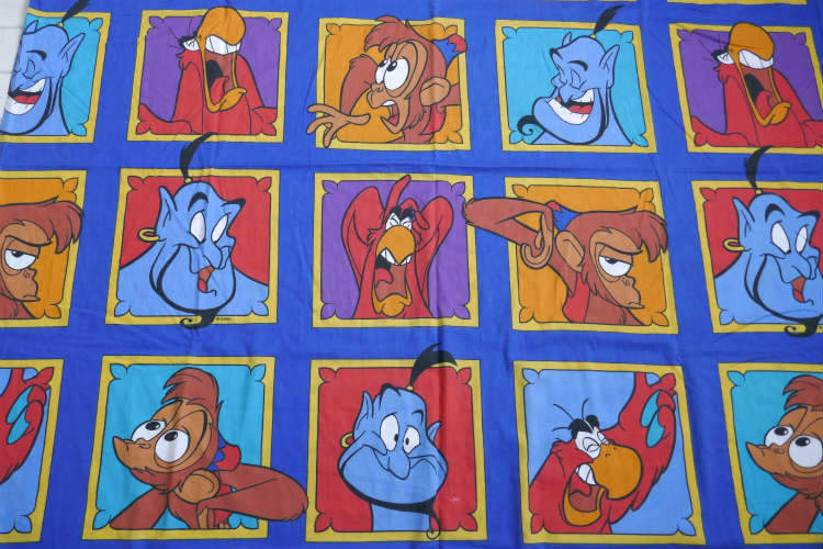 アラジン ディズニー映画 ジーニー アブー イアーゴ パネル柄 キャラクター ユーズドシーツ ボックスタイプ ベッドシーツ USA