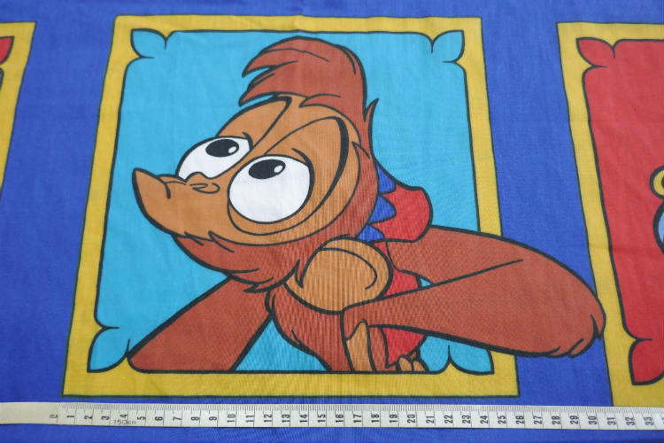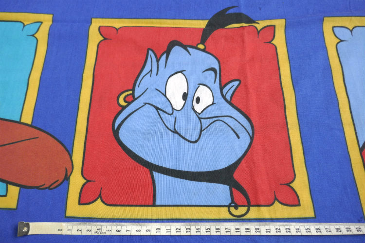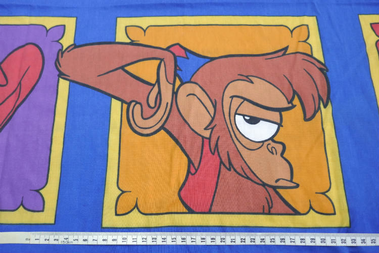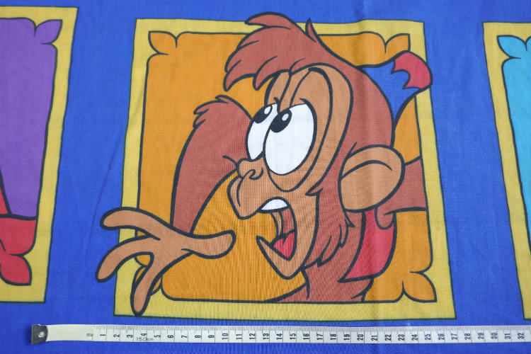 アラジンに登場する主人公・世界最強の魔人“ジーニー”&アラジンの相棒猿“アブー”&ジャファーの肩にいつも乗っているオウム“イアーゴ”の、カラフルなパネル柄プリントです。