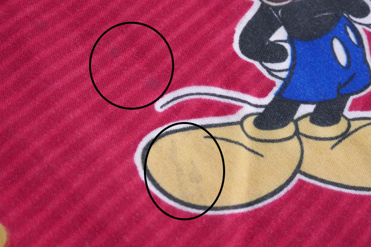 プリントの発色良く、生地もしっかりしておりますが、数カ所に薄いヨゴレが見られます。