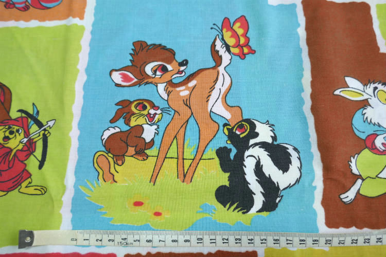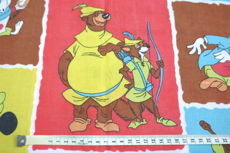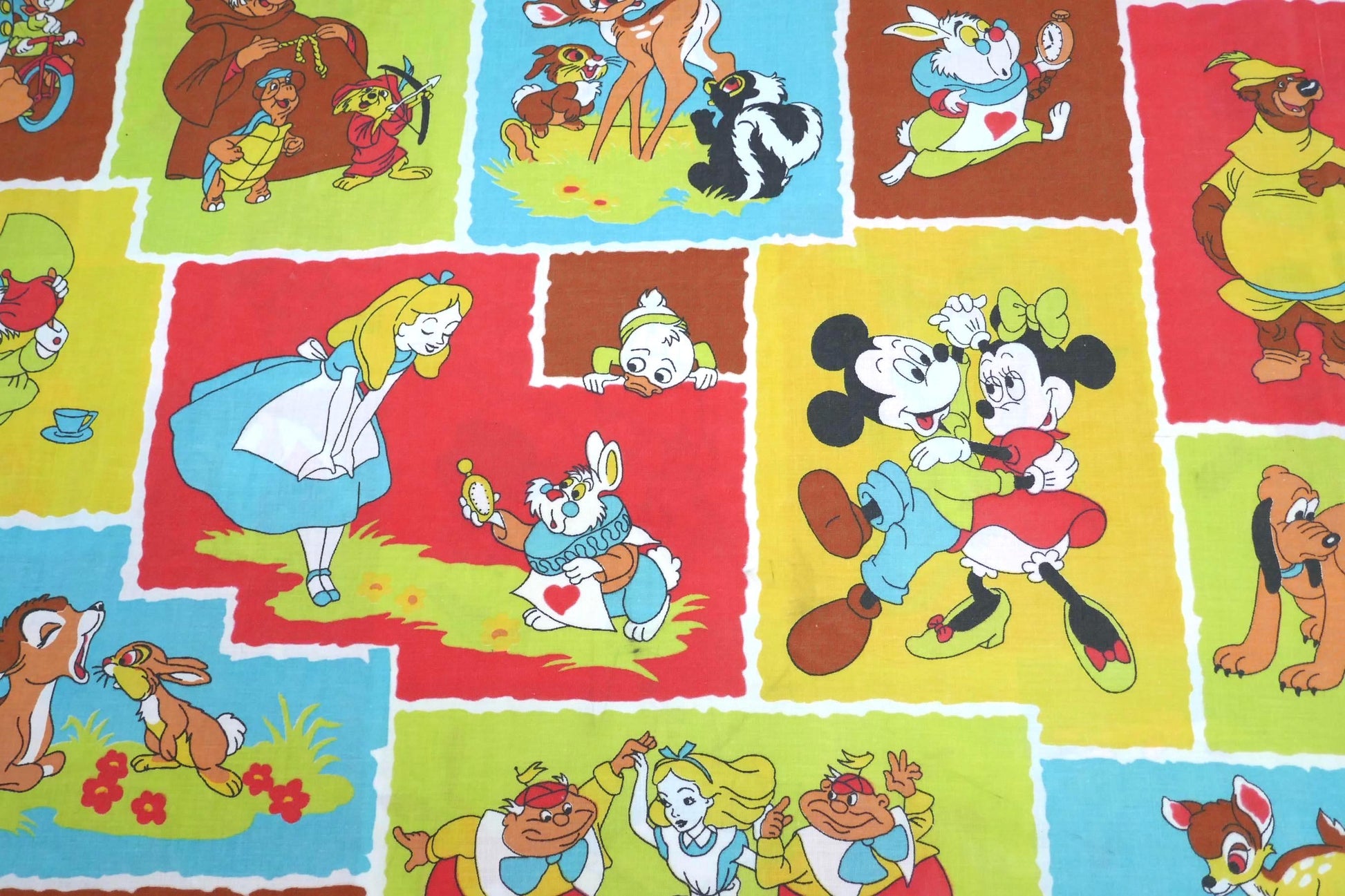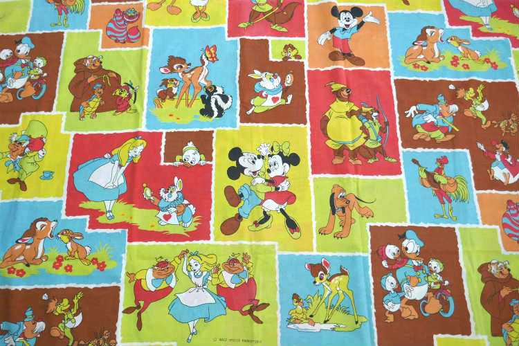 ディズニー ミッキー&フレンズ バンビ ふしぎの国のアリスロビンフッド 70's ビンテージ ユーズドシーツ カットシーツ レア USA 181×133㎝