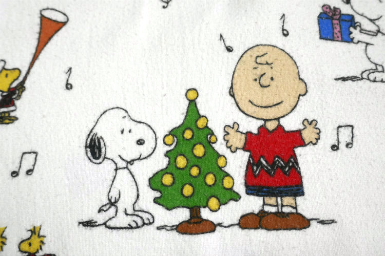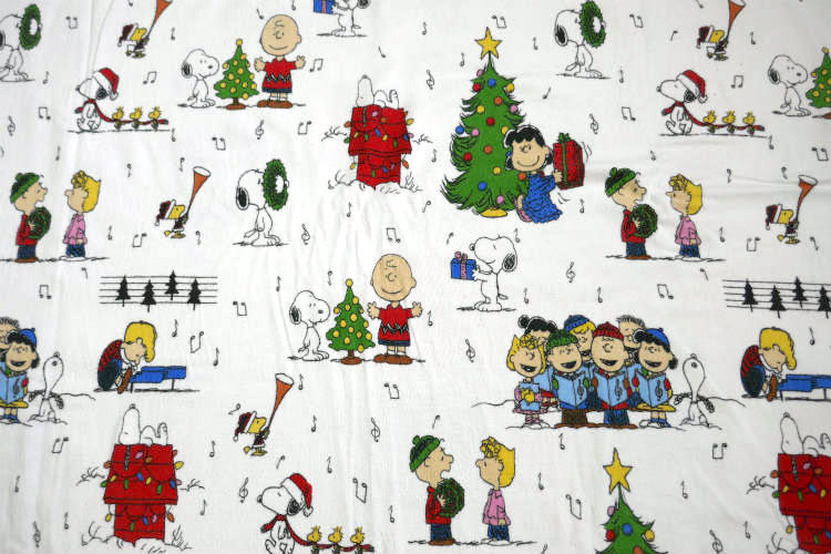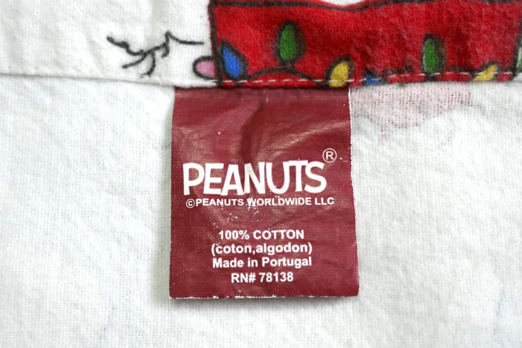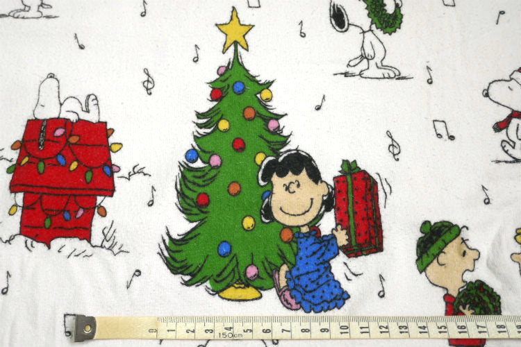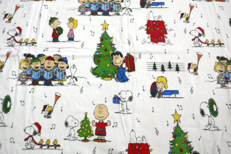 スヌーピー SNOOPY ピーナッツの仲間 ピーナッツギャング クリスマス柄 コットン100% フランネル素材 ユーズドシーツ (1/4) ポルトガル製
