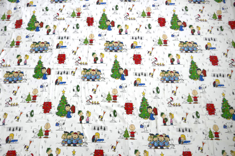 アメリカ西海岸・カリフォルニア州・ロサンゼルスで見つけました・・『ピーナッツの仲間たち』のクリスマス柄・USEDフラットシーツ(ハーフサイズ)です。