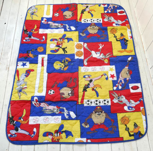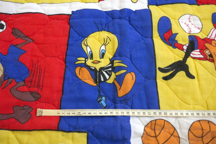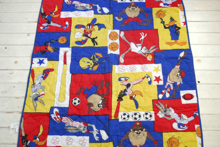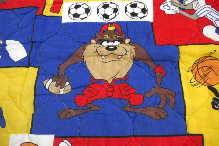 ルーニーテューンズ バッグスバニー タスマニアンデビル トゥイーティー ダフィーダック パネル スポーツ柄 キルティング製 ベビーマット ブランケット USA