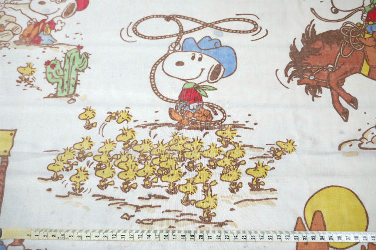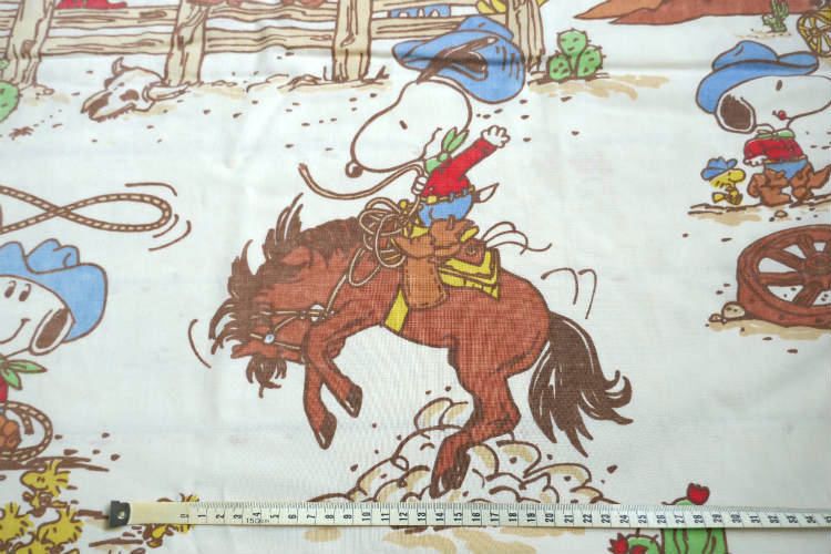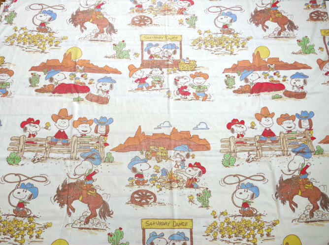 アメリカ西海岸・カリフォルニア州・サンフランシスコで見つけました・・『ピーナッツの仲間たち(ピーナッツ ギャング)』のウエスタン柄・ヴィンテージ・USEDフラットシーツです。