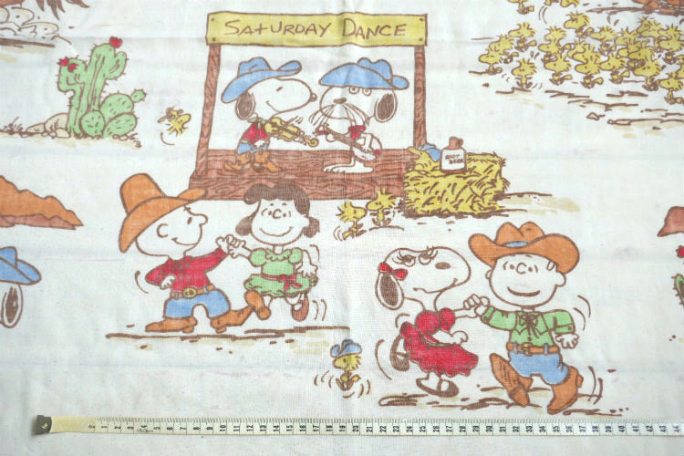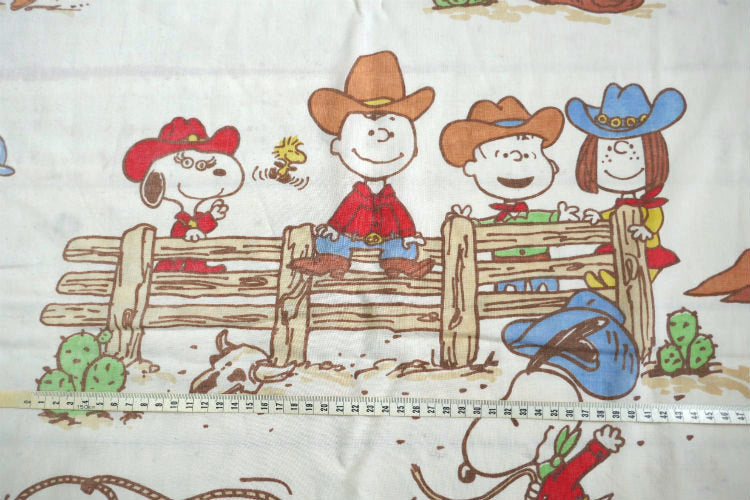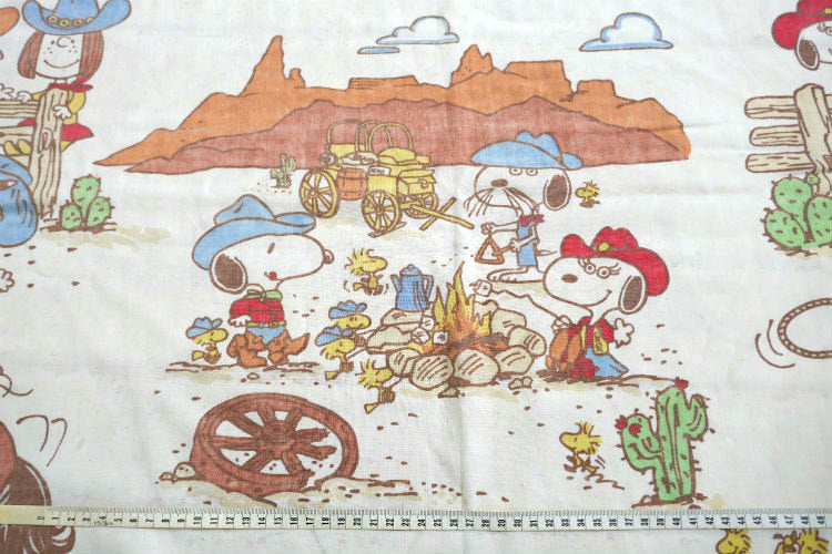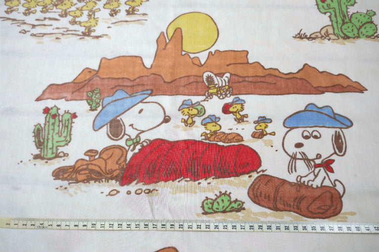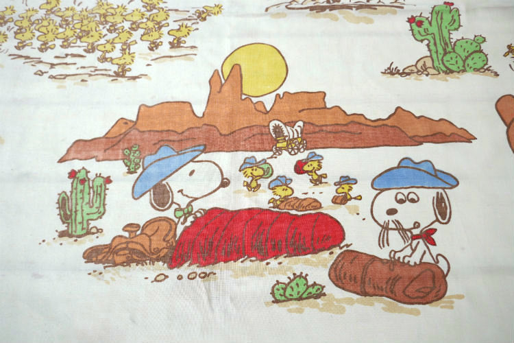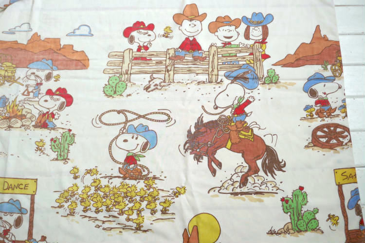 スヌーピー ピーナッツの仲間たち ピーナッツギャング ウエスタン カウボーイ キャンプ 70's ヴィンテージ ユーズドシーツ フラットシーツ USA 送料無料
