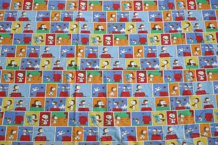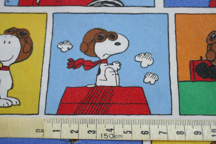 SNOOPY スヌーピー フライングエース ウッドストック 12パターン パネル柄 ヴィンテージ USEDフラットシーツ(1/4) ファブリック 生地