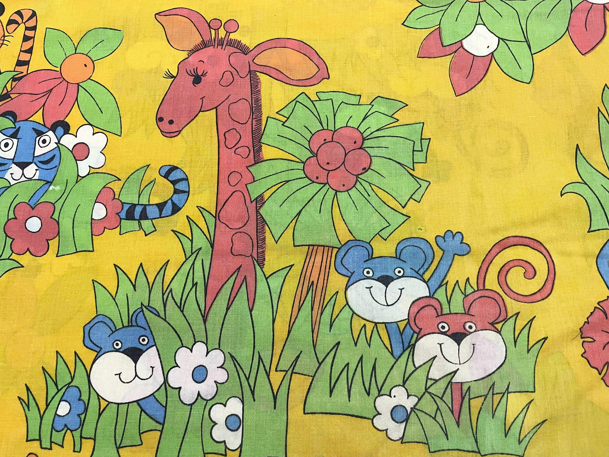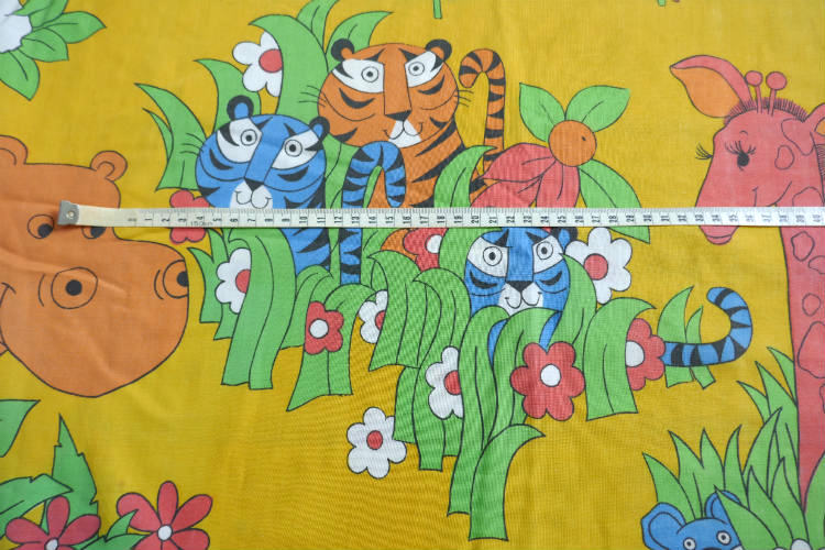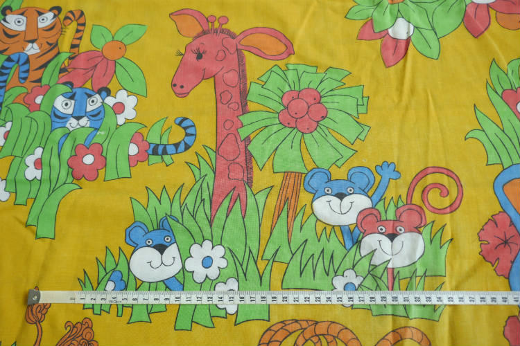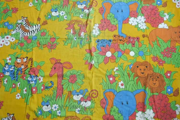 アメリカ西海岸・カリフォルニア州・サンフランシスコで見つけました・・アニマル・ジャングル柄のヴィンテージ・USEDフィットシーツです。(ツインサイズ)