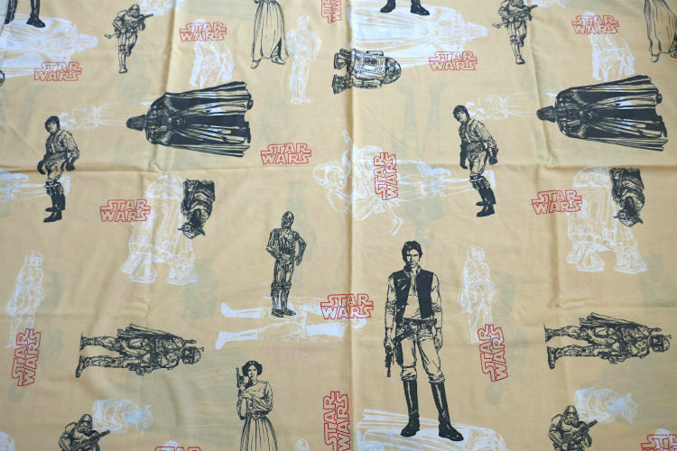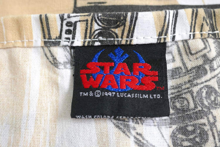 アメリカ西海岸・カリフォルニア州・ロサンゼルスで見つけました・・ジョージ・ルーカスが製作・監督したアメリカのSF映画『スターウォーズ(STAR WARS)』のUSEDフラットシーツ(ハーフサイズ)です。