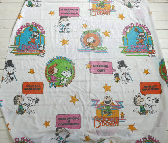 SNOOPY スヌーピー ピーナッツの仲間たち ディスコ柄 60' ヴィンテージ ユーズドシーツ ベッドシーツ(ボックスタイプ) USA
