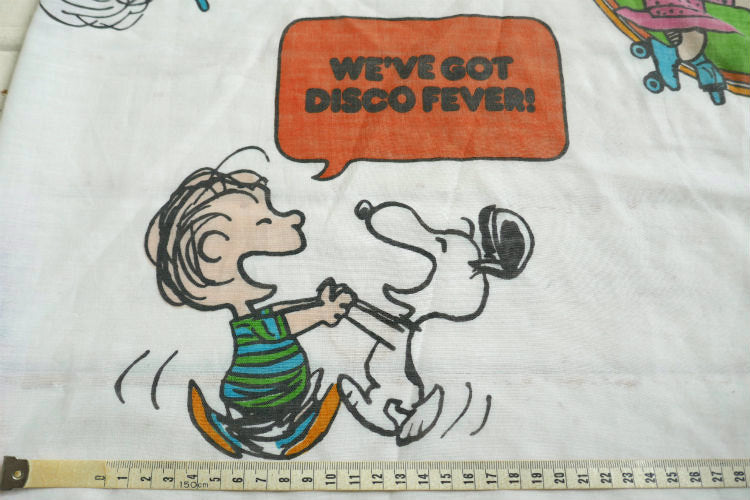 アメリカ西海岸・カリフォルニア州・ロサンゼルスで見つけました・・アメリカの老舗大型デパート″SEARS ROEBUCK(シアーズ・ローバック)社″で販売されていた、スヌーピー『ピーナッツの仲間たち』のディスコ柄・ヴィンテージ・USEDフィットシーツです。