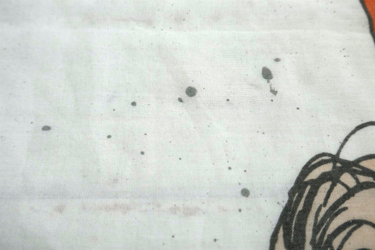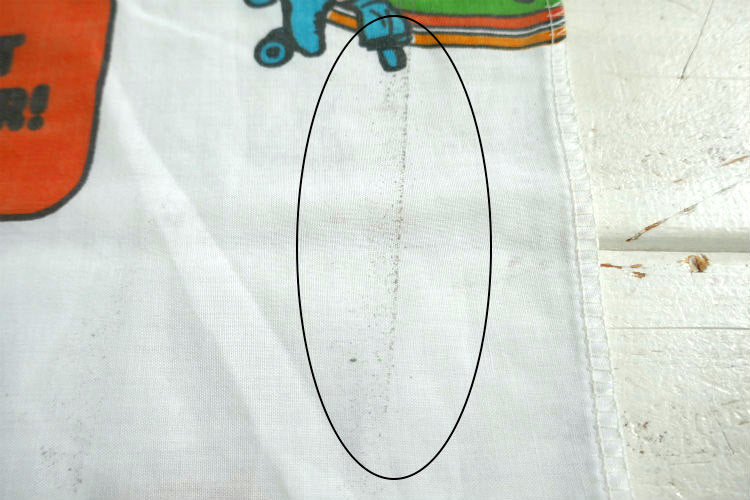 経年による使用感があり、数カ所にヨゴレ・プリント薄れ・生地の薄れ・中央に毛玉などございます。