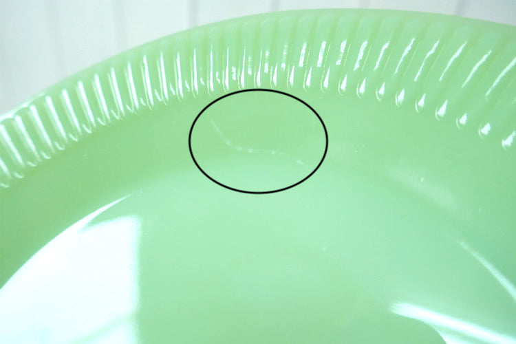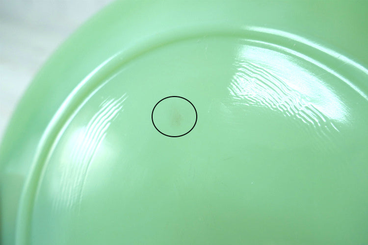 中央に製造時の練りムラ&ホワイトスポット、ボトム一部に薄いグレーの着色箇所が見られますが、ヒビ・欠け無くツヤピカのグッドコンディションです。