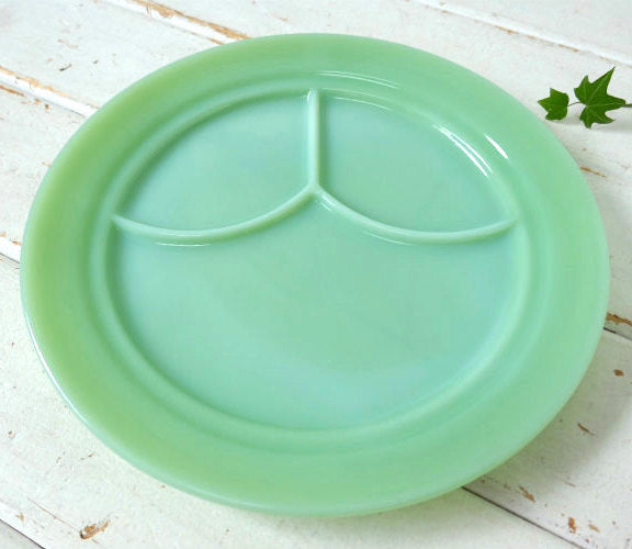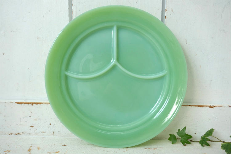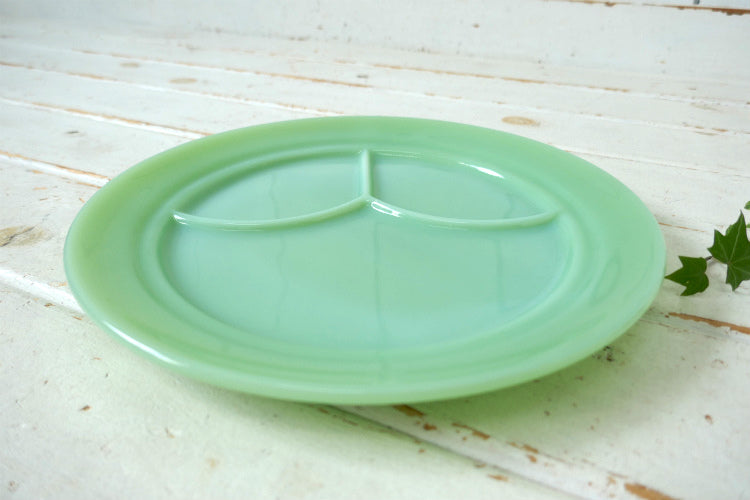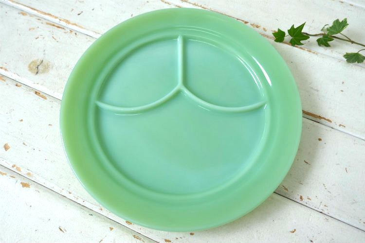 アメリカ西海岸・カリフォルニア州・サンフランシスコで見つけました・・アンカーホッキング 社『ファイヤーキング』のミルクガラス製・ヴィンテージ・3コンパートメントプレートです。