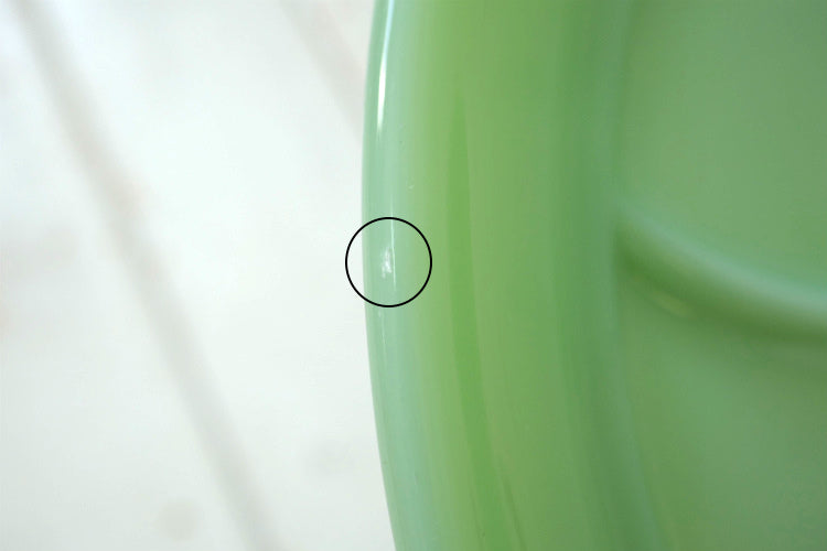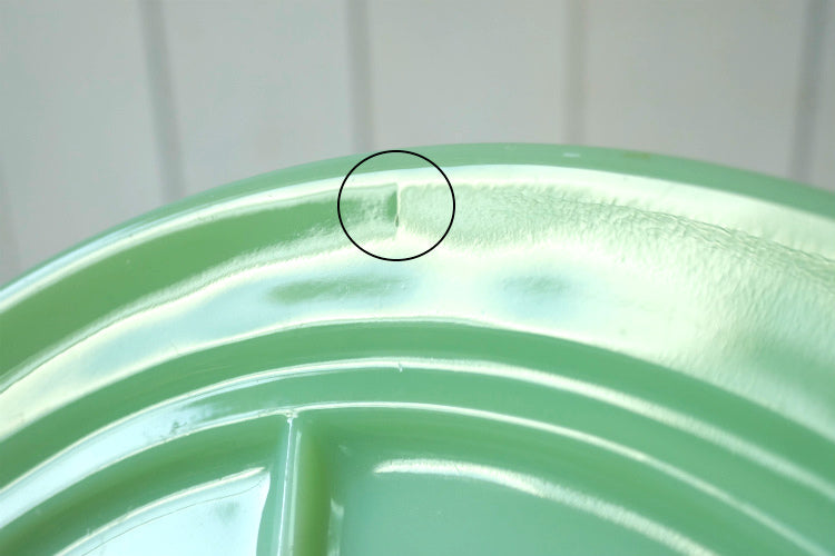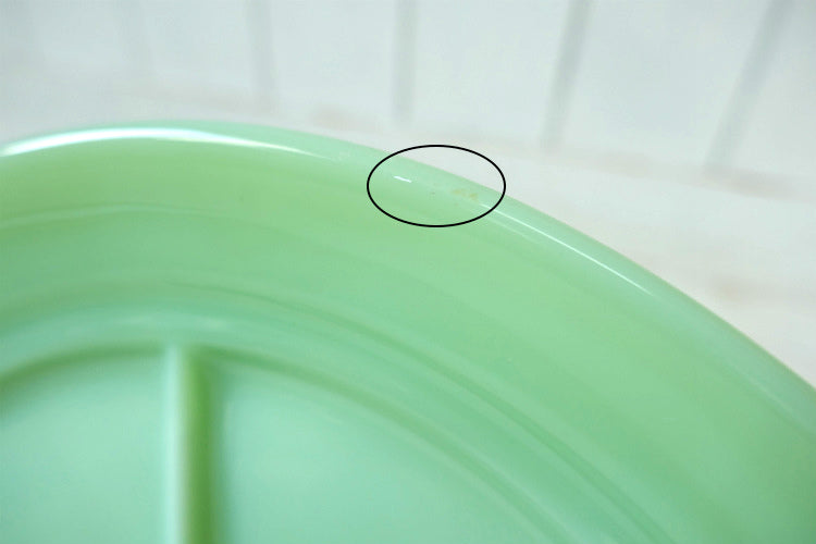 製造時の小さな表面の気泡・2箇所程に約1㎝の劣化線・仕切り部分上のザラツキ・リムの着色箇所・リム1箇所のフリーバイト等、多少の使用感がございます。