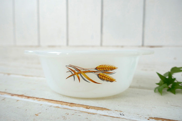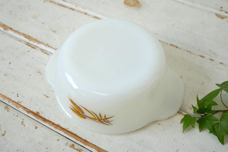 FireKing ファイヤーキング Wheat ウィート 小麦柄 ミルクガラス製 キャセロール ボウル 1パイント 食器 USA