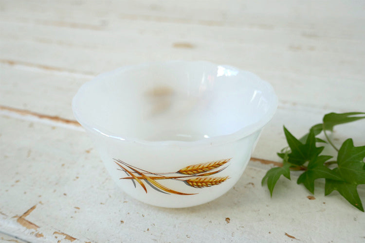 FireKing ファイヤーキング Wheat ウィート 小麦柄 ミルクガラス製 カスタードカップ 食器 USA