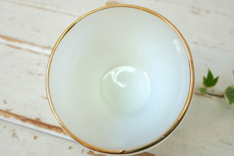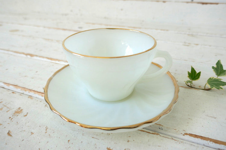 アメリカ西海岸、カリフォルニア州・サンフランシスコで見つけました・・アンカーホッキング 社『ファイヤーキング』の″シェルシリーズ″・ゴールドリム・ミルクガラス製・ヴィンテージ・カップ&ソーサーです。