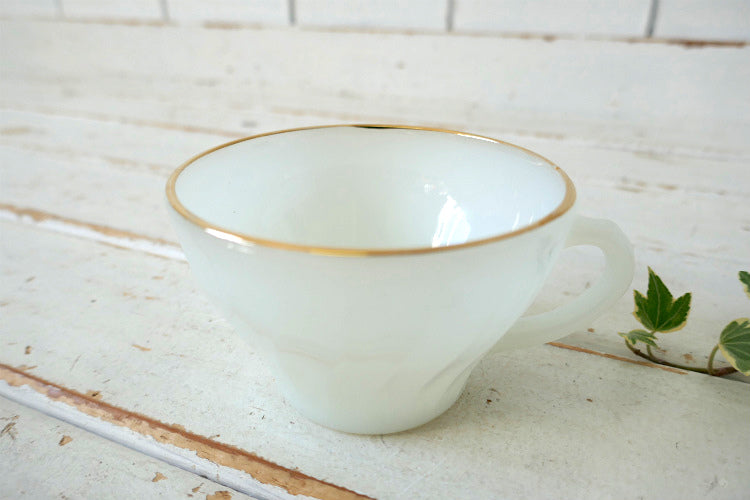 Fire King ファイヤーキング シェル ゴールドリム ホワイト 70's ヴィンテージ カップ&ソーサー 食器 USA Ⅱ