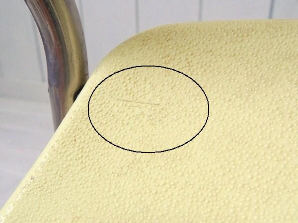 経年による多少のヨゴレ・スリキズ・サビ・座面左奥に約4cmの割れ(画像参照)等ございます。