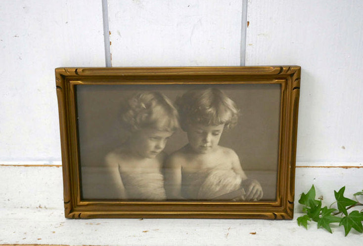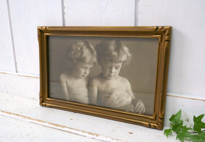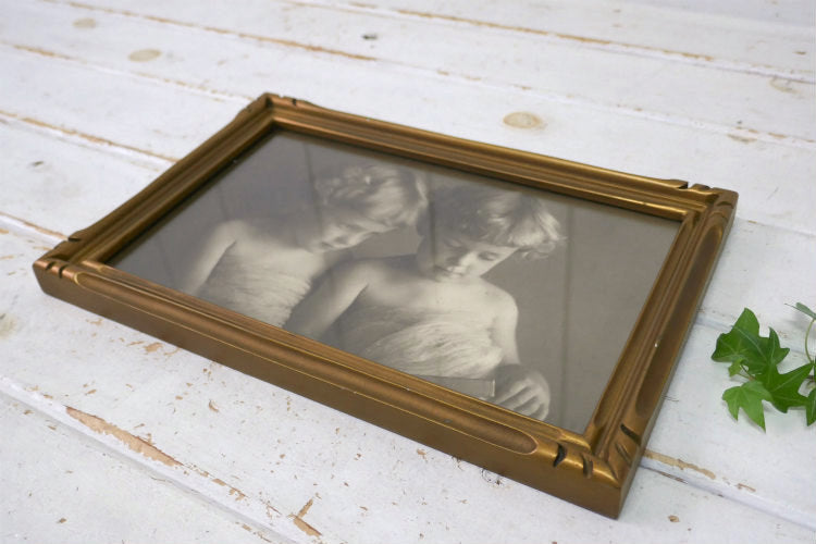 The Gift shop Oakland セピア写真 ツインズ 少女 ゴールドフレーム ヴィンテージ 木製 フレーム 額縁 額装 アート USA