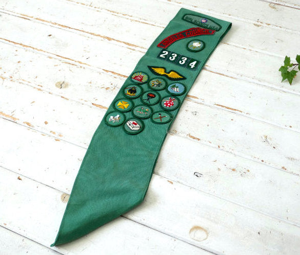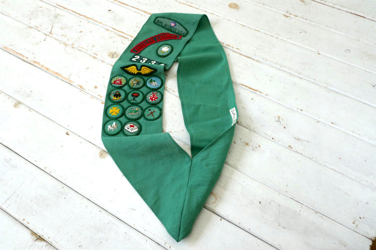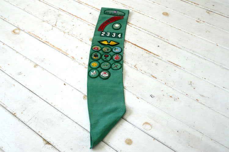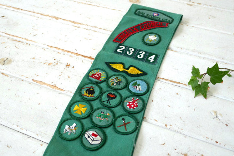 GIRL SCOUT ガールスカウト Junior ワッペン 刺繍 19パッチ付き グリーン ビンテージ サッシュ たすき 制服 ユニフォーム USA