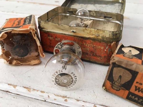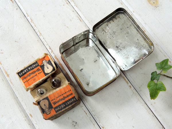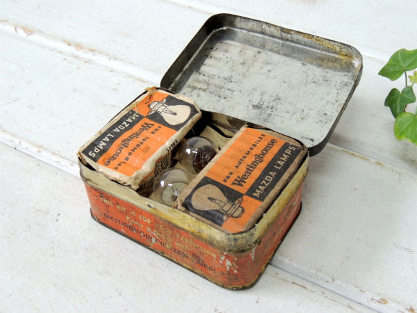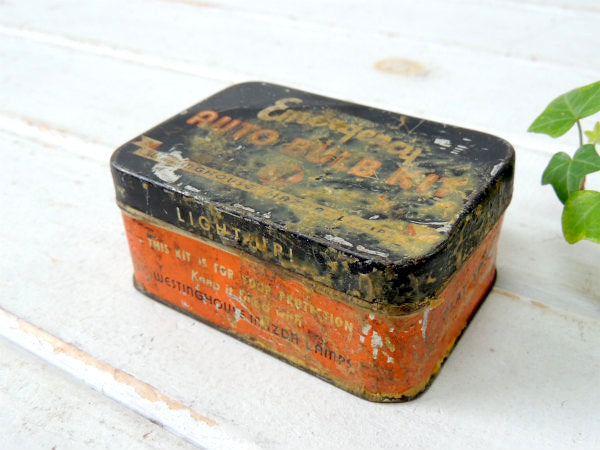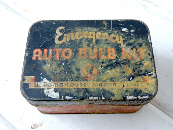 アメリカ南部・テキサス州・ヒューストンで見つけました・・1930's Westing house 【Mazda Lamps(マツダ ランプ) Emergency AUTO BULB KIT】オートパーツ ヴィンテージ・ティン缶です。