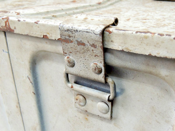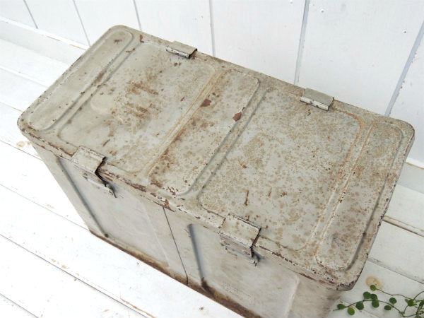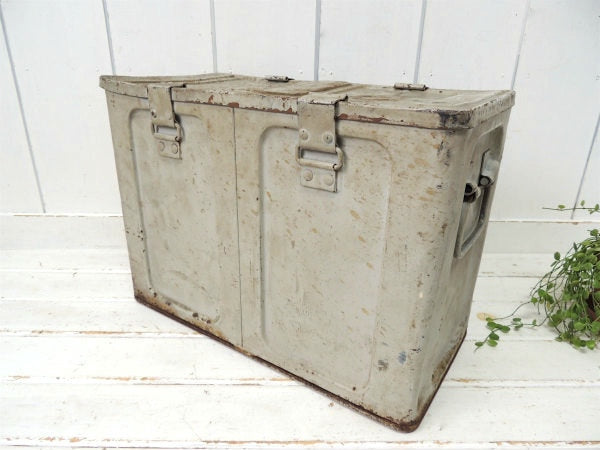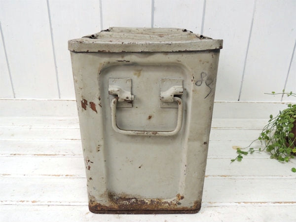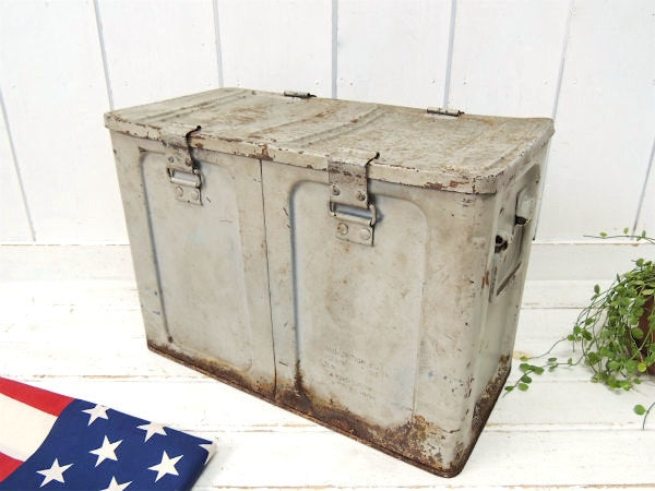 第二次世界大戦の際に、米軍が弾薬の運搬に使用されていた、フタ&ハンドル付きのメタルボックスです。
