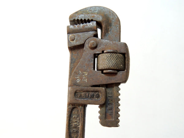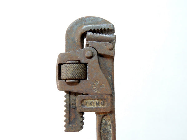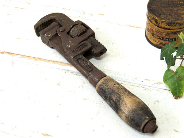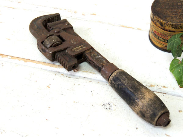 TRIMO PAT 1916 アンティーク ウッドハンドル 工具 パイプレンチ レンチ 大工道具 DIY
