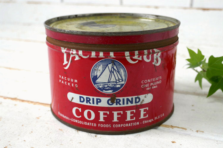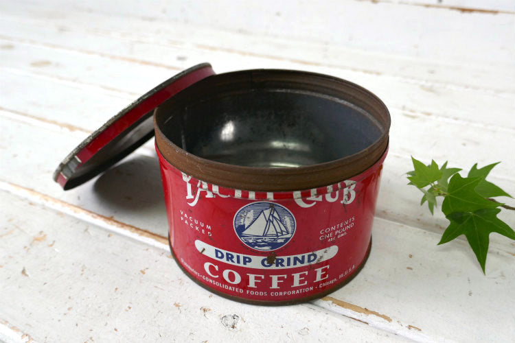 YACHT CLUB COFFEE ヨット カラフル 蓋付き 50's ヴィンテージ コーヒー缶 ティン缶 USA