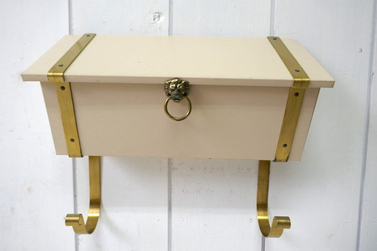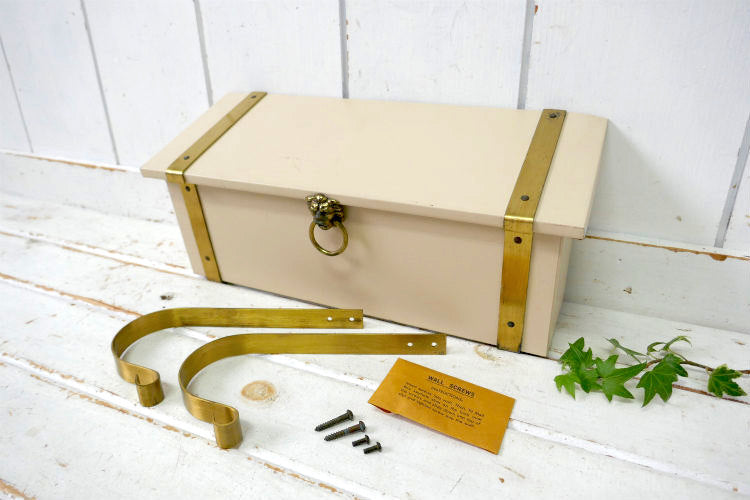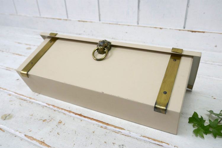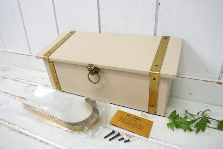 ライオンモチーフ 新聞受け付き メタル製 横型 デッドストック ヴィンテージ メールボックス 郵便受け ポスト USA