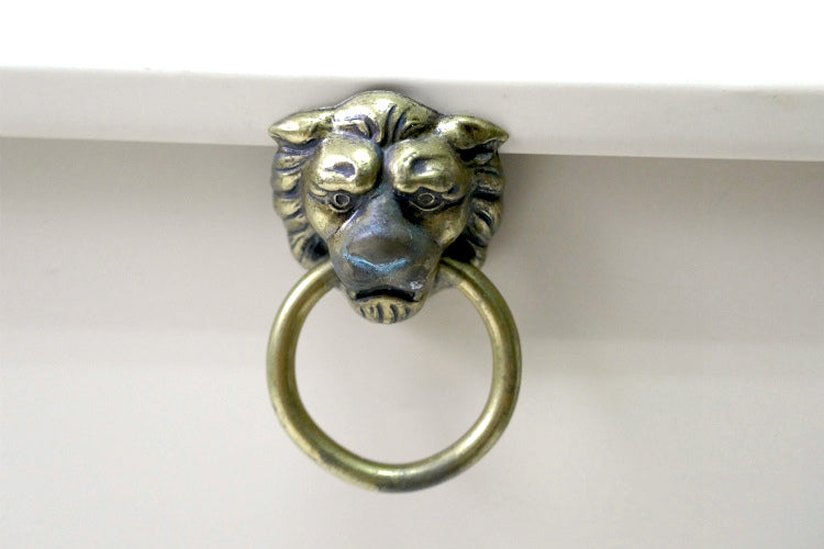 蓋の持ち手部分には、ゴールドトーンのリング&ライオン顔モチーフ装飾、両サイドにゴールドトーンのプレート装飾が施された、重厚感あるデザインです。